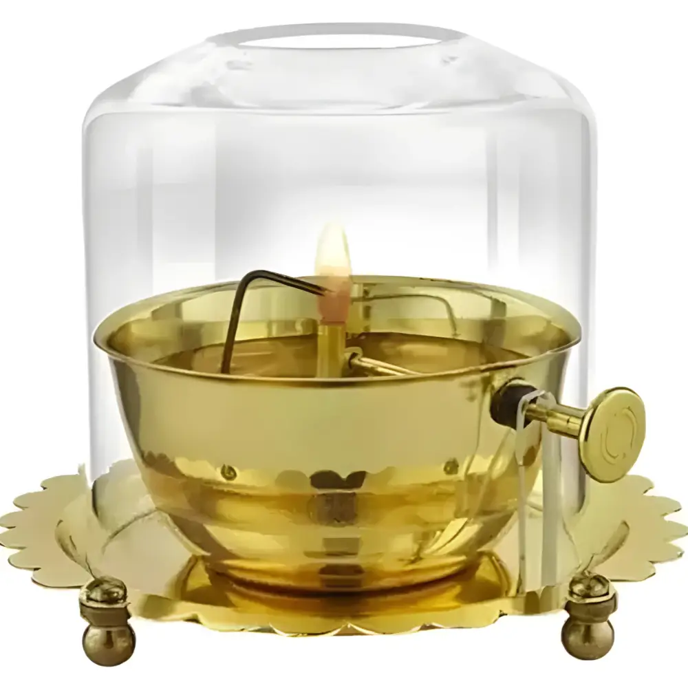 • Functionality: The glass cover protects the flame, allowing it to burn continuously for extended periods (Akhand means “unbroken”).